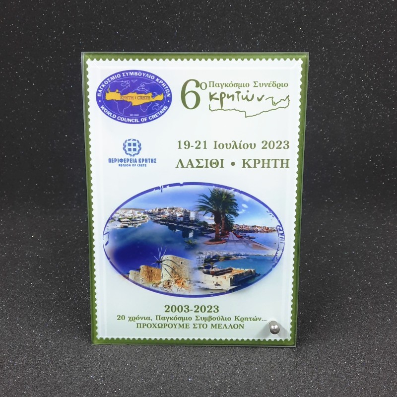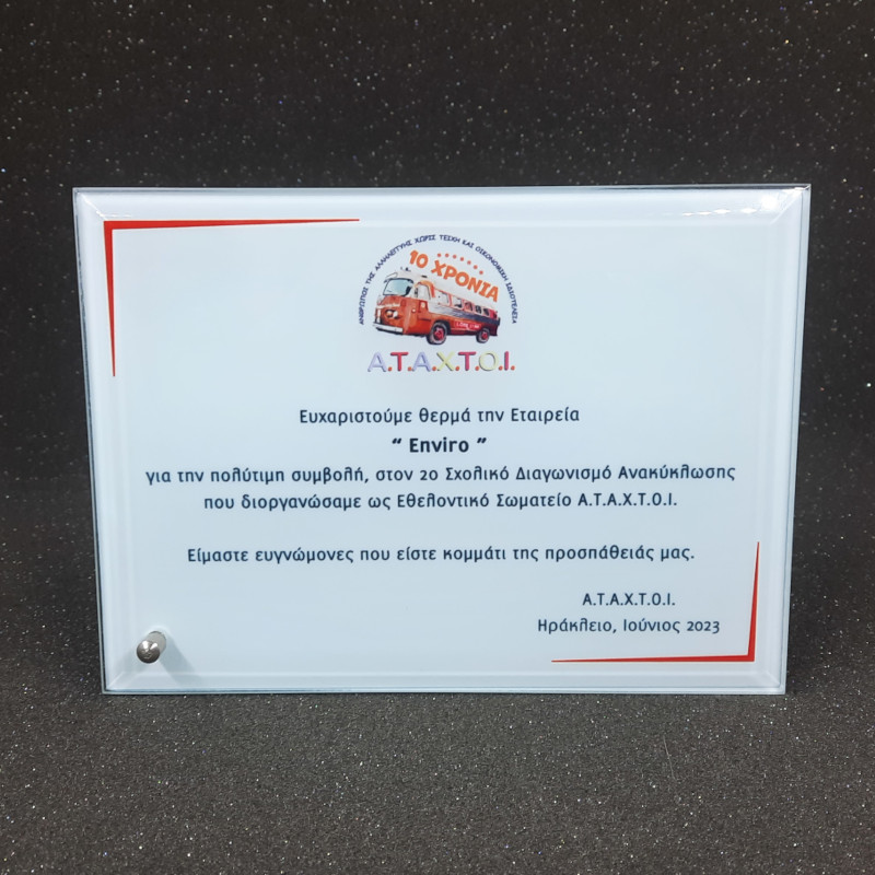 Πλακέτα κρυστάλλινη σε ορθογώνιο σχήμα, κατάλληλο για απονομές τιμών οποιουδήποτε τύπου.