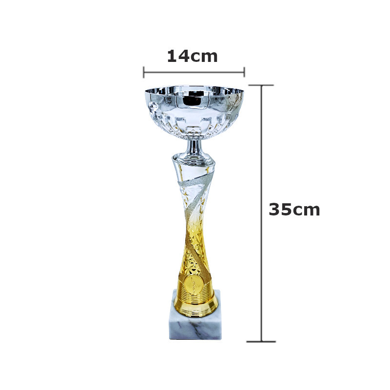Αναμνηστικό κύπελλο με κομψό σχέδιο και ιδιαίτερο συνδυασμό χρωμάτων με θέση για αθλητικό θέμα ή το λογότυπο σας. Ιδανικό για αθλητικές διοργανώσεις, σχολικές γιορτές, εταιρικές τιμητικές εκδηλώσεις ή ομαδικές επιβραβεύσεις.