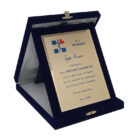 Κασετίνα Βελούδινη με πλακέτα για έγχρωμη εκτύπωση σε κάθετη διάταξη. Κομψή επιλογή για απονομή ή τιμητική διάκριση.